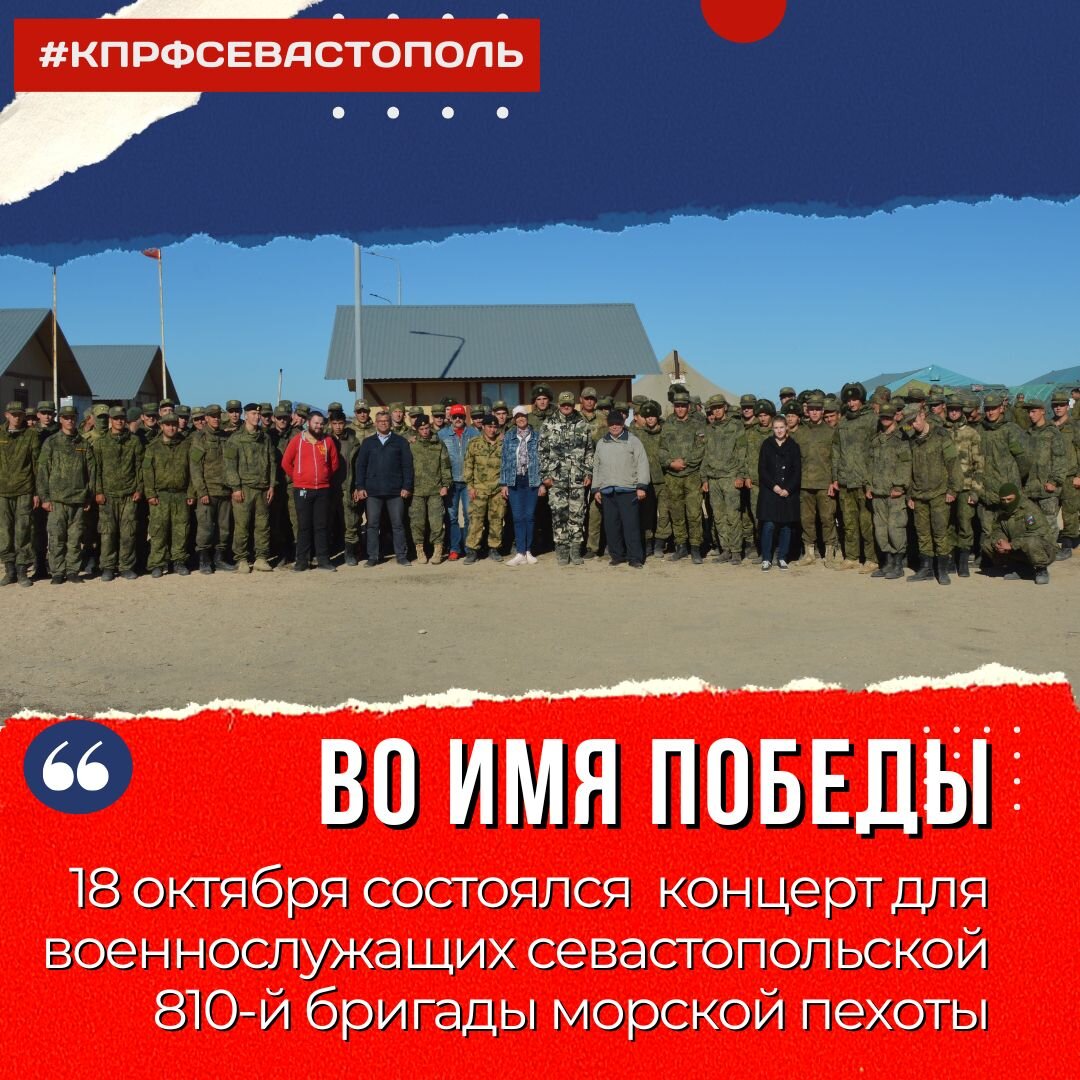 18 октября Севастопольское городское отделение КПРФ совместно с Ленинским Комсомолом г. Севастополя организовали концерт для военнослужащих севастопольской 810-й бригады морской пехоты.