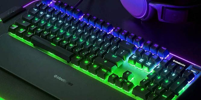 Если вам нужна одна из лучших игровых клавиатур, обратите внимание на SteelSeries Apex Pro. Несмотря на то, что это не последняя игровая клавиатура, появившаяся на рынке, ее функции не имеют себе равных. В частности, переключатели OmniPoint внутри платы позволяют регулировать расстояние предварительного перемещения каждой отдельной клавиши в диапазоне от 1,0 мм до 3,8 мм. Следовательно, если вы хотите сверхкороткий предварительный ход клавиш WASD и более длинный предварительный ход остальной части клавиатуры, чтобы избежать опечаток во время чата, вы можете легко настроить это с помощью сопутствующего программного обеспечения.