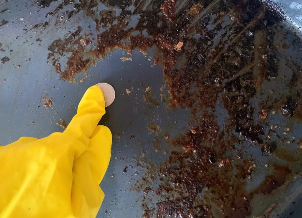 Китаянка рассказала как с помощью одно монеты легко отмывает противень от жира - делюсь хитростью
