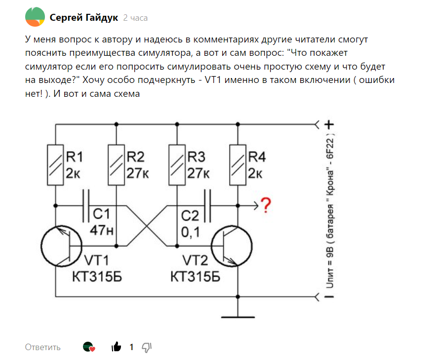 Полезность и достоверность симулятора радиосхем. Часть 2, ответ подписчику.