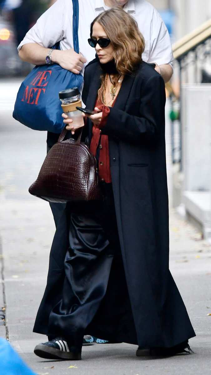 Мэри-Кейт Олсен в эффектном пальто длины макси в Нью-Йорке