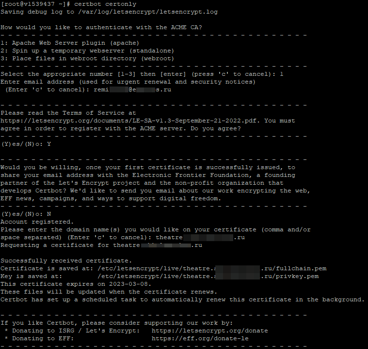 # certbot certonly Если нет пункта 1: Apache Web Server plugin (apache), то выполните: