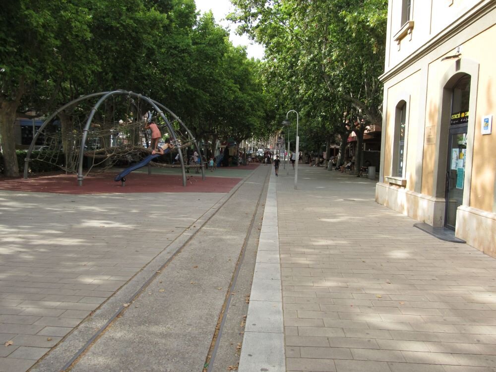 Испанцы любят свои железные дороги! Но только тогда, когда они не мешают бизнесу. Железная дорога в Салоу приходила дважды. В первый раз вокзал открылся в 1865 году, когда из Реуса пришел первый пассажирский поезд. Малюсенький поезд с малюсенькими вагончиками, но железная дорога стала мощным стимулом для развития Салоу как курорта. Сохранилась часть этой дороги на пешеходной зоне (дорога шла перпендикулярно к побережью) Само здание здание сейчас переделано в детский сад Грузовой сарай переделан в спортивный клуб, рядом с которым сохранился поворотный круг для паровозов Позади здания станции/детского сада установлен памятником сам первый поезд Затем была построена железнодорожная линия Барселона - Валенсия и поезда в Салоу стали приходить из Таррагоны (линия шла параллельно побережью). Зимой на ней было не так много народа, а вот летом поезда ходили переполненными - туристам гораздо проще и удобнее было добраться за полтора часа до центра Барселоны, когда на автобусе можно было потратит