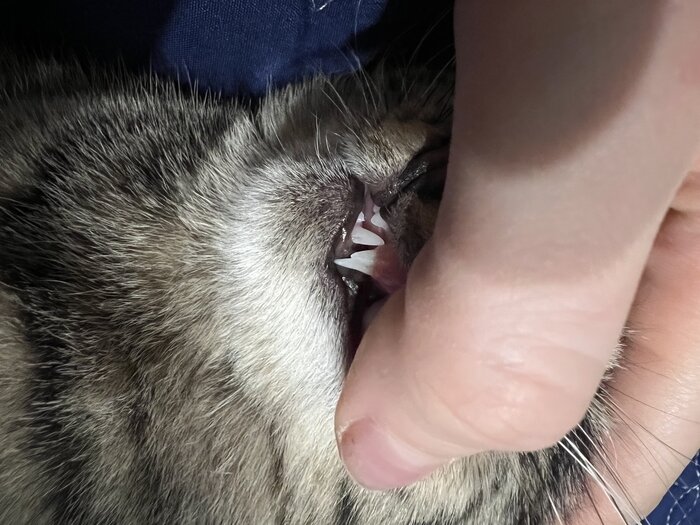 У неё прорезался кроёной клык, в течении 20 минут я уже связалась с врачем и меня успокоили что в таком возрасте это бывает и это нормально. Сказали наблюдать и в случае если через месяц не выпадет то уже потребуется операция по удалению.