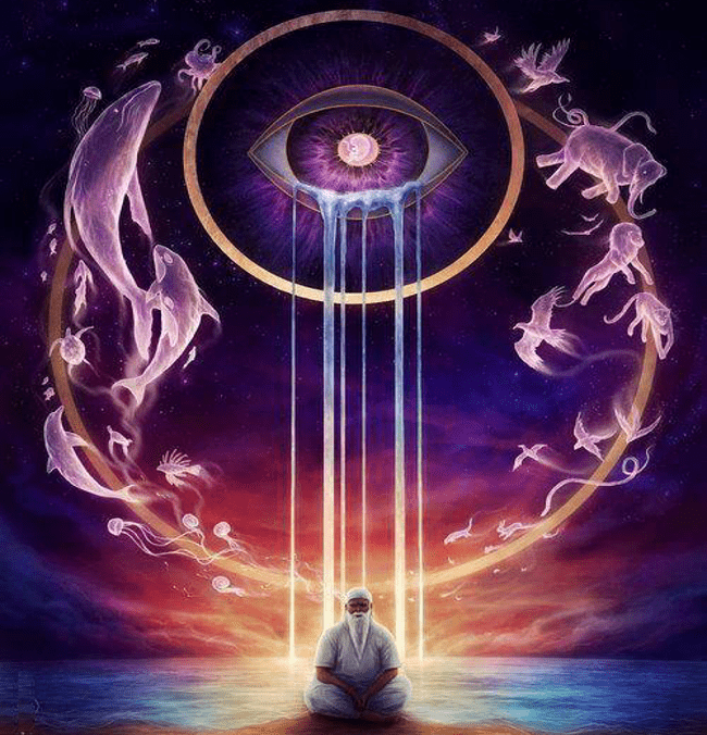Мы собираемся разделить прекрасный сон – сон, который вы навсегда полюбите. В разгаре прекрасный тёплый, солнечный день. Вы слышите птиц, ветер, речушку. Идёте к воде. У самого берега медитирует старец, и вы видите, как от его головы исходит чудесное разноцветное сияние. Вы стараетесь не потревожить его, но он замечает ваше присутствие и открывает глаза. Они исполнены Любви и улыбаются.