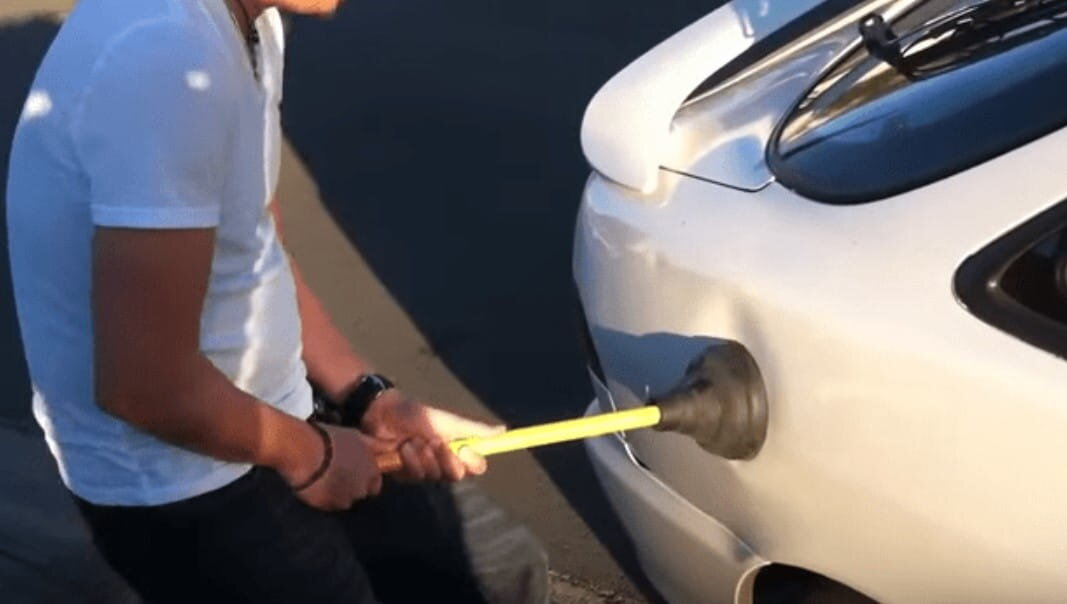 Я вожу автомобиль и наткнулась на американскую статью с автомобильными лайфхаками. Некоторые из них смешные, некоторые, скажу прямо, я не поняла, но есть очень даже интересные. Возможно кто-то их возьмёт на вооружение. Я взяла лишь некоторые, но если вы хотите узнать больше ссылка внизу статьи. Если у вас на автомобиле небольшая вмятина, то вы сможете от неё избавиться с помощью обычного вантуза, предварительно нагрев место вмятины горячей водой. Закрепите вантуз как показано на картинке и потяните. Проведите процедуру несколько раз. Возможно вмятина выпрямится неидеально, но всё же, она будет малозаметна. Не секрет, что иногда в автомобиле необходимо мусорное ведро для мелкого мусора. Вместо мусорного ведра можно использовать контейнер для сыпучих продуктов с крышкой. Главное найти место куда его поставить. Замечено, что если вы сильно торопитесь, и едете с превышением скорости на некоторых участках дороги, то вы почти наверняка, столкнетесь с большим количеством красных светофоров.