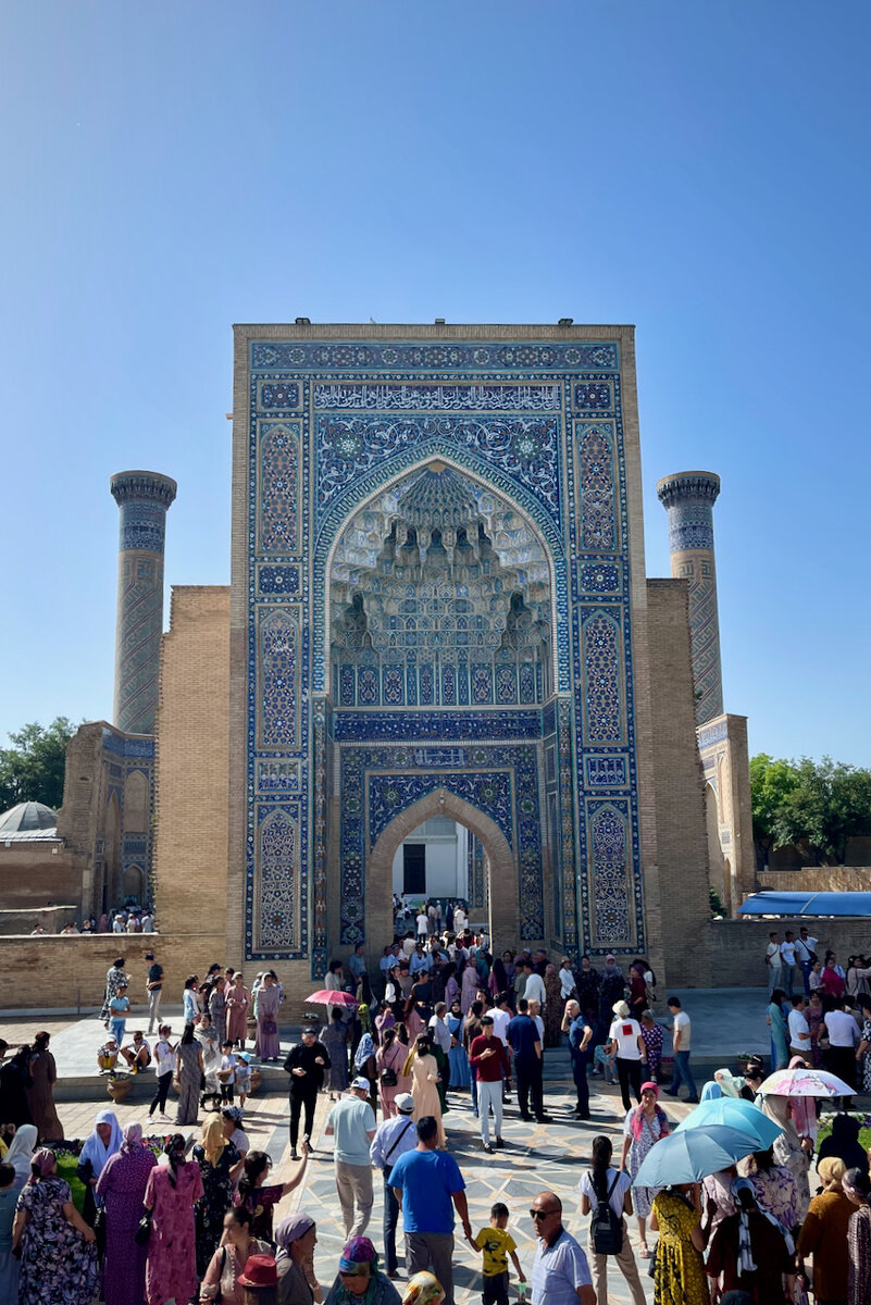 А мавзолей Гур-Эмир в Самарканде сейчас одна из главнейших достопримечательностей города. Он невероятно красив внутри – желто-синяя мозаика, позолота, купол, имитирующий звездное небо, ажурные решетки на окнах, мраморные и ониксовые панели, покрытые резьбой, росписью и инкрустированные полудрагоценными камнями. Все сияет и сверкает.