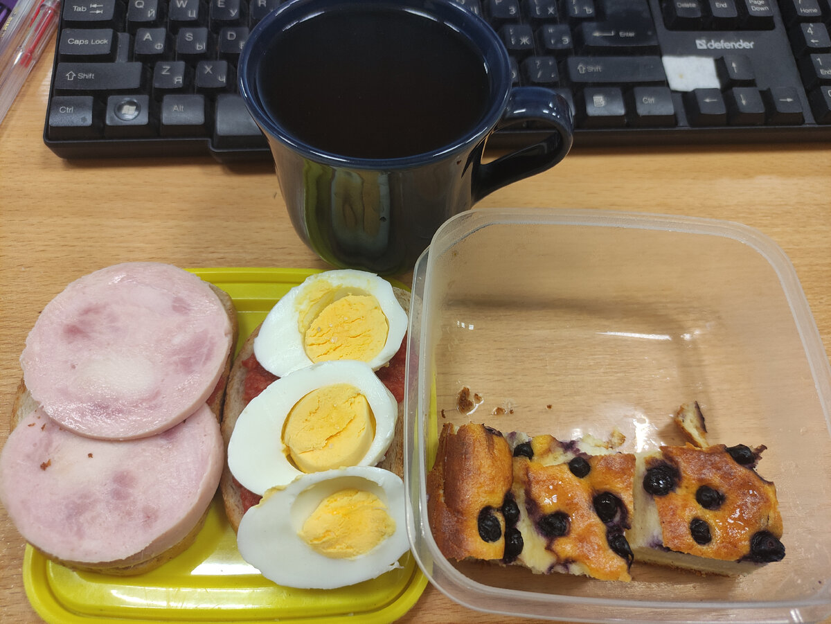 Доброе утро,дзен🌺 Вчера я даже проснулась более менее, прям удивительно. От этого вторничный жор ушел, и даже вечером я была вполне бодра, что не дало мне вовремя уснуть. Утром в четверг (сегодня)я очень удивилась отвесу в 1.1 кг, но цифры те же,я уже 3 неделю топчусь, как всегда худея сантиметрами и по приходу на работу поняла откуда ноги растут: цикл пришел аж на 3 дня раньше, мда. Так что в субботу тренировка убирается(посмотрю на воскресенье мб, но не удобно), и себя еще больше хвалим за тренировку во вторник. Не зря не зря заставляла себя. Ну а теперь вернемся к рациону среды. Завтрак решила сделать бутербродным, что то последнее время на омлет и жареные яйца не тянет, а в таком виде огонь. И наелась, хотя вчера на всякий взяла доп бутерброд с сыром на жор, а жора не было. Спокойно перекусила шарлоткой кусочком. И была прям сытенькая, обедала позже обычного. В комментах делала скрин и сюда запихну, то что мотивирует не опускать руки, что если б не делала ничего, а после каждой не