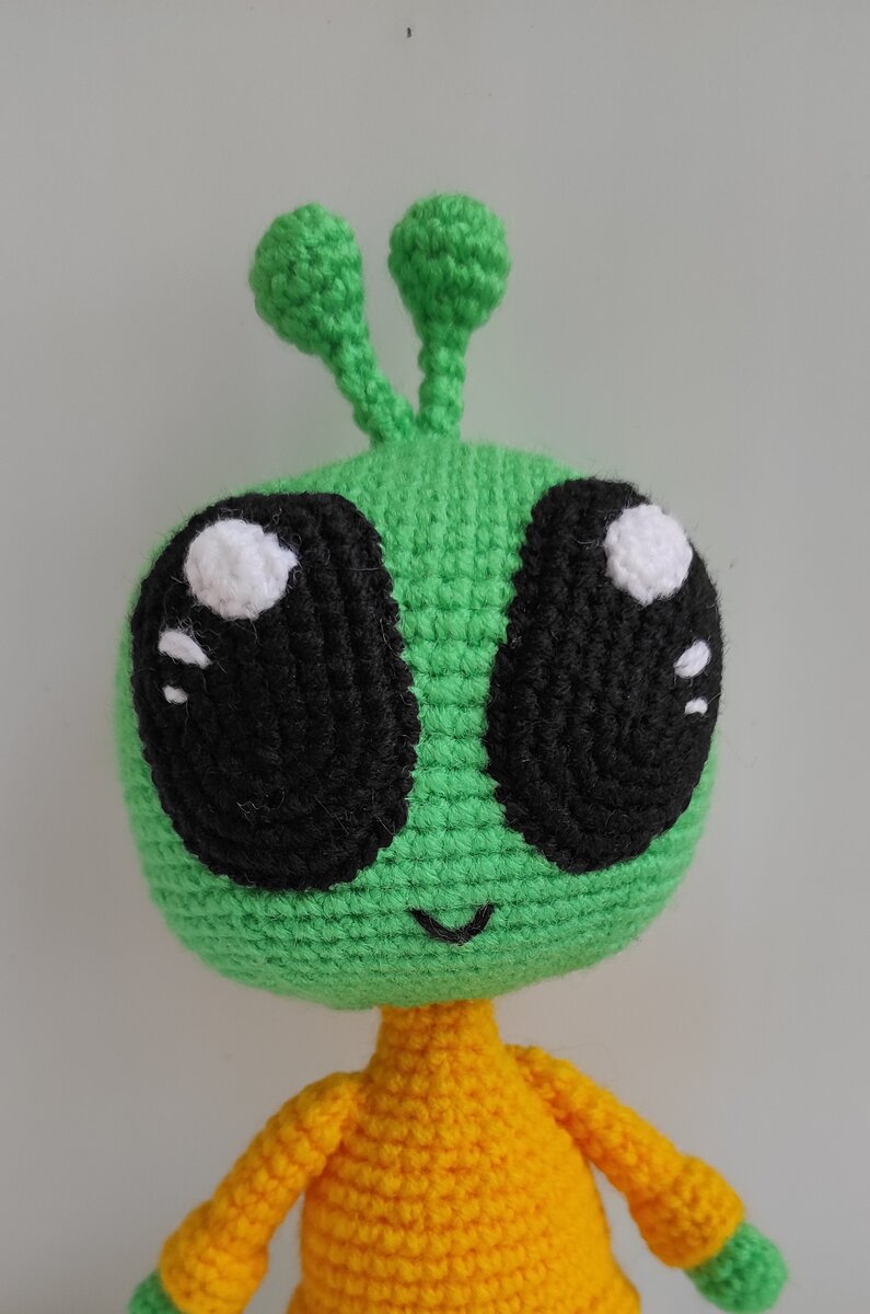 Инопланетянин, вязаная игрушка погремушка крючком мастер-класс. Часть 2-я.