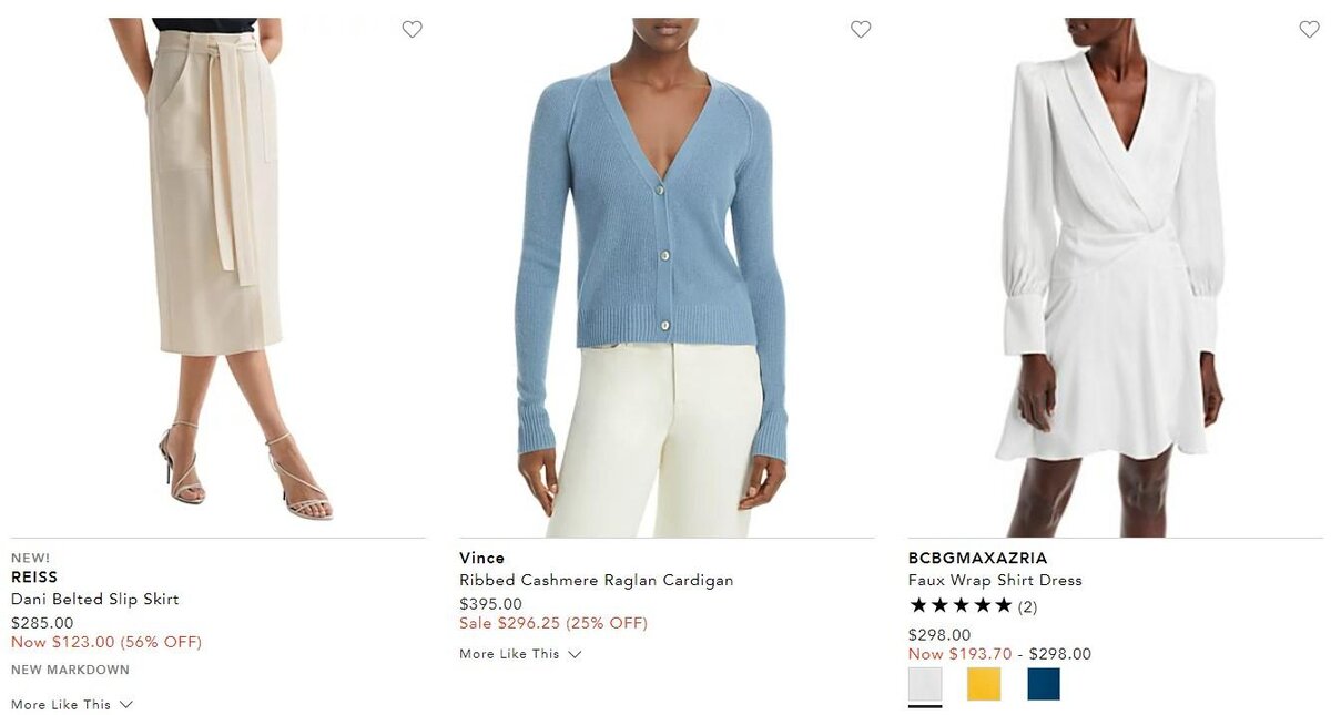 Сеть гипермаркетов предлагает одежду, обувь и аксессуары преимущественно американских дизайнеров. Европейские бренды представлены, как британскими именами — Jimmy Choo, Burberry — так и знаменитыми марками из Франции и Италии. Покупка вещей в Bloomingdale’s осложняется лимитами на доставку из США, поэтому рекомендуем обратить внимание на раздел Sale. На главной странице с распродажами Bloomingdale’s указаны самые выгодные предложения, например, скидки до 70% и товары до $100.