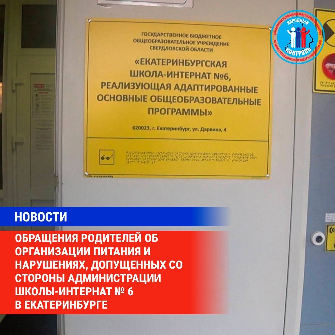 В СРОО Народный КОНТРОЛЬ поступают анонимные обращения и жалобы от родителей на действия администрации Екатеринбургской школы-интернат № 6 по улице Дарвина, 4.