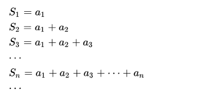 Ряд, или, иначе, бесконечная сумма. Что такое сумма ряда, можно прочитать по ссылке. Достаточно прочитать лишь вводную часть статьи. Покажу здесь только картинку из этой вводной части: Это представляет, что такое частичные суммы ряда. Я лишь уточню, что такое «последовательность частичных сумм S_n имеет конечный предел S». Это означает, что какую бы точность мы не захотели, начиная с какого-то места, все значения S_n будут давать приближенное значение для S c нехудшей погрешностью. Или, как выражаются математики,