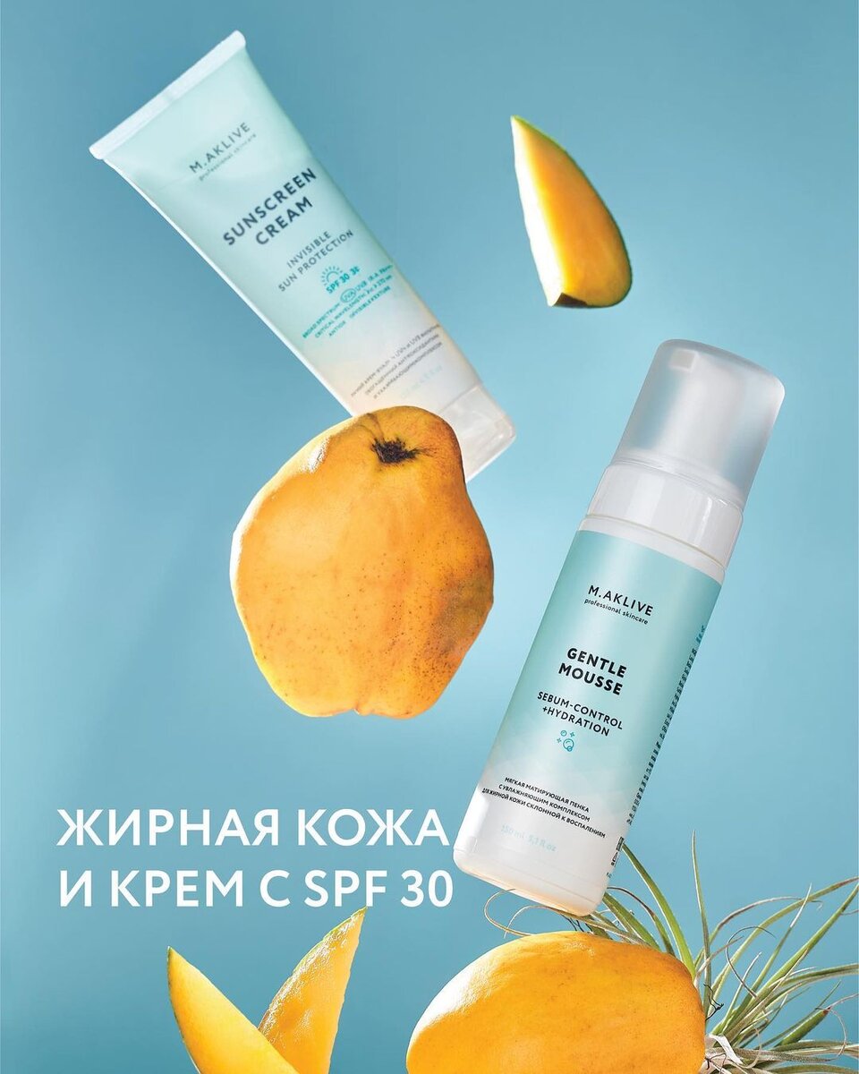Согласно опросам, основная причина, по которой люди отказываются от кремов с фактором защиты – дискомфорт от его нанесения. Особенно на это жалуются обладатели жирной кожи: кремы с SPF кажутся им «тяжелыми», «под ними блестит и потеет лицо», «воспалений и комедонов становится больше», «крем липкий и выбеливает» - это основные жалобы. При этом абсолютное большинство из тех, кто попробовал Крем с SPF30 от M.AKLIVE выбирают его снова. Название «Невидимая защита от воздействия солнца» говорит за себя: крем не липкий, не выбеливает кожу, не утяжеляет. В карусели – отзывы из Telegram-чата “Вместе с M.AKLIVE” от тех, кто пользуется им не первый год и советы о дополнительном матировании и тщательном очищении. Эти жесты делают применение крема еще комфортнее и снижают риск воспалений. Тщательное вечернее очищение при нанесении кремов с SPF необходимо: это снижает риск воспалений. Добавьте к программе очищения гидрофильное масло или бальзам для растворения защитного крема и макияжа. Все кремы с