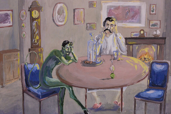 Бывший чиновник интендантского управления, отставной коллежский секретарь Лахматов, сидел у себя за столом и, выпивая шестнадцатую рюмку, размышлял о братстве, равенстве и свободе. Вдруг из-за лампы выглянул на него чёрт... Но не пугайтесь, читательница. Вы знаете, что такое чёрт? Это молодой человек приятной наружности, с черной, как сапоги, рожей и с красными выразительными глазами. На голове у него, хотя он и не женат, рожки... Прическа à la Капуль. Тело покрыто зеленой шерстью и пахнет псиной. Внизу спины болтается хвост, оканчивающийся стрелой... Вместо пальцев — когти, вместо ног — лошадиные копыта. Лахматов, увидев чёрта, несколько смутился, но потом, вспомнив, что зеленые черти имеют глупое обыкновение являться ко всем вообще подвыпившим людям, скоро успокоился.— С кем я имею честь говорить? — обратился он к непрошенному гостю.Чёрт сконфузился и потупил глазки.— Вы не стесняйтесь, — продолжал Лахматов. — Подойдите ближе... Я человек без предрассудков, и вы можете говорить со м