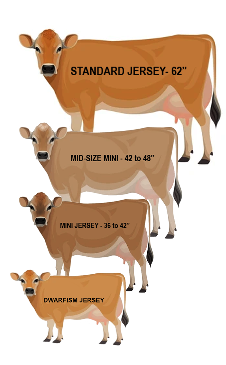 Крупный рогатый скот Джерси бывают разных размеров, а настоящие мини-джерси достигают 36-42 дюйма (рост в холке от 91 см до 106 см).
