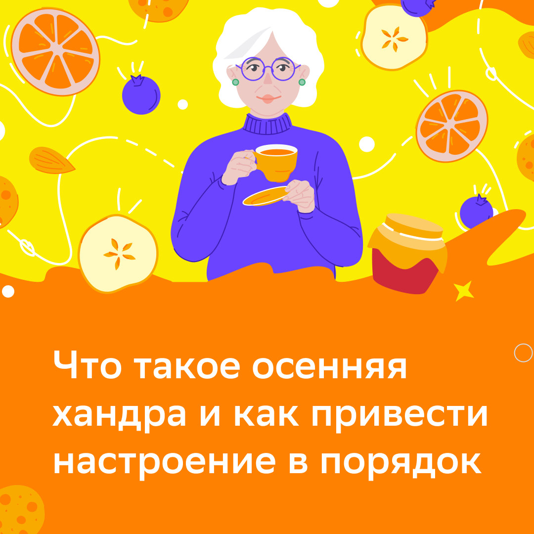 Хандра — естественное состояние человека осенью. Дожди, холод, темень за окном и плачущее небо под ногами заставят грустить кого угодно. И риск погрузиться в печаль возрастает, если у вас много свободного времени. Но есть и хорошие новости. В отличие от депрессии, сезонную грусть не так уж и сложно победить. Рассказываем, как. Откуда берётся хандра Сезонное аффективное расстройство (САР): так по-научному называют то, что в народе принято именовать хандрой. Специалисты считают САР частным случаем депрессии. Но в отличие от последней чаще всего оно не требует медикаментозного лечения. Основные признаки сезонного падения настроения: подавленность, потеря аппетита, усталость, сонливость днём и проблемы с засыпанием ночью. А главная его причина — недостаток солнечного света. Поэтому первое, что стоит сделать в борьбе с осенней хандрой — привести в порядок уровень витамина D, который вырабатывается в организме благодаря солнцу. Витамин хорошего настроения Витамин D отвечает за выработку «гор