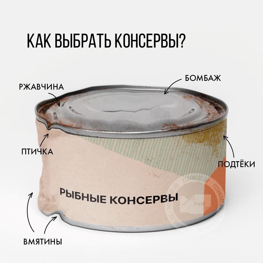 ❌На ней не должно быть следов ржавчины, проверяем банку на бомбаж (вздутие) - содержимое вздутой банки употреблять нельзя.