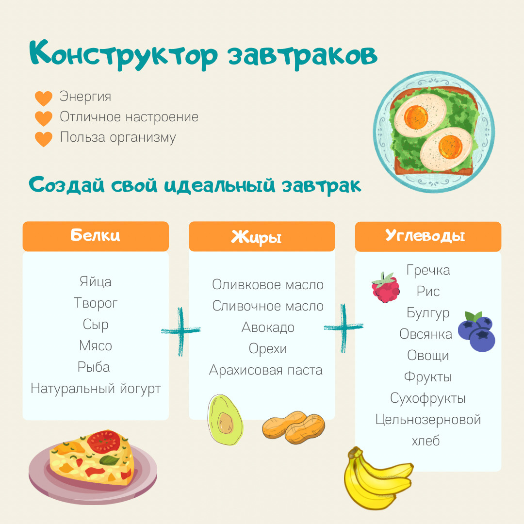 ✅Было проведено исследование, подтверждающее, что люди, которые завтракают, имеют более сильный иммунитет и не так часто болеют!!! Правильный завтрак предотвращает возможность переедания во второй половине дня👍 💭Завтрак, завтрак, завтрак... Давайте разбираться, как же нам приготовить вкусный, сбалансированный и полезный завтрак, который принесет удовольствие, пробудит вкусовые рецепторы и зарядит энергией и настроением на весь день! ⚖️Идеальный баланс Правильный завтрак должен состоять из 3 компонентов: белков, жиров и сложных углеводов.. 💭Углеводы Когда вы съедаете с утра быстрые углеводы, уровень сахара в крови быстро повышается и вы действительно ощущаете бодрость. Но точно с такой же скоростью идёт обратная реакция, приходит чувство ещё большей усталости и голода. Такие инсулиновые скачки приводят к набору веса и развитию диабета. Поэтому на завтрак обязательно берем только сложные углеводы в виде круп, цельнозерновых хлебов, муки, овощей и зелени. К ним можно добавить пр