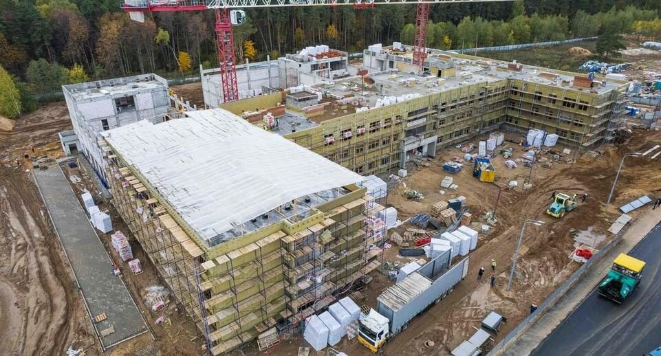 Завершились монолитные работы в школе в ЖК «Новая Рига» в деревне Глухово городского округа Красногорск. Школу на 1150 мест планируется ввести в эксплуатацию в 2023 году. В трех секциях школы в ЖК «Новая Рига» завершили монолитные работы. Застройщик ГК «Гранель» привлек к строительству учреждения более 200 специалистов. На данный момент готовность объекта составляет 65%. Образовательное учреждение строится за счет внебюджетных источников финансирования по договору о комплексном развитии территории. Общая площадь школы — 14324 квадратных метров. Трехэтажное здание включает учебный, спортивный и административный блоки. На первом этаже школы будут расположены кабинеты для уроков технологии и труда, столовая, раздевалки для начальной и средней школы, медицинский блок. Здесь же появится помещение для охраны и пожарного поста, а также игровая-спальня для первоклассников. Второй этаж вместит спортивный и актовый залы, а на третьем этаже будут расположены классы. В школе также предполагаются м
