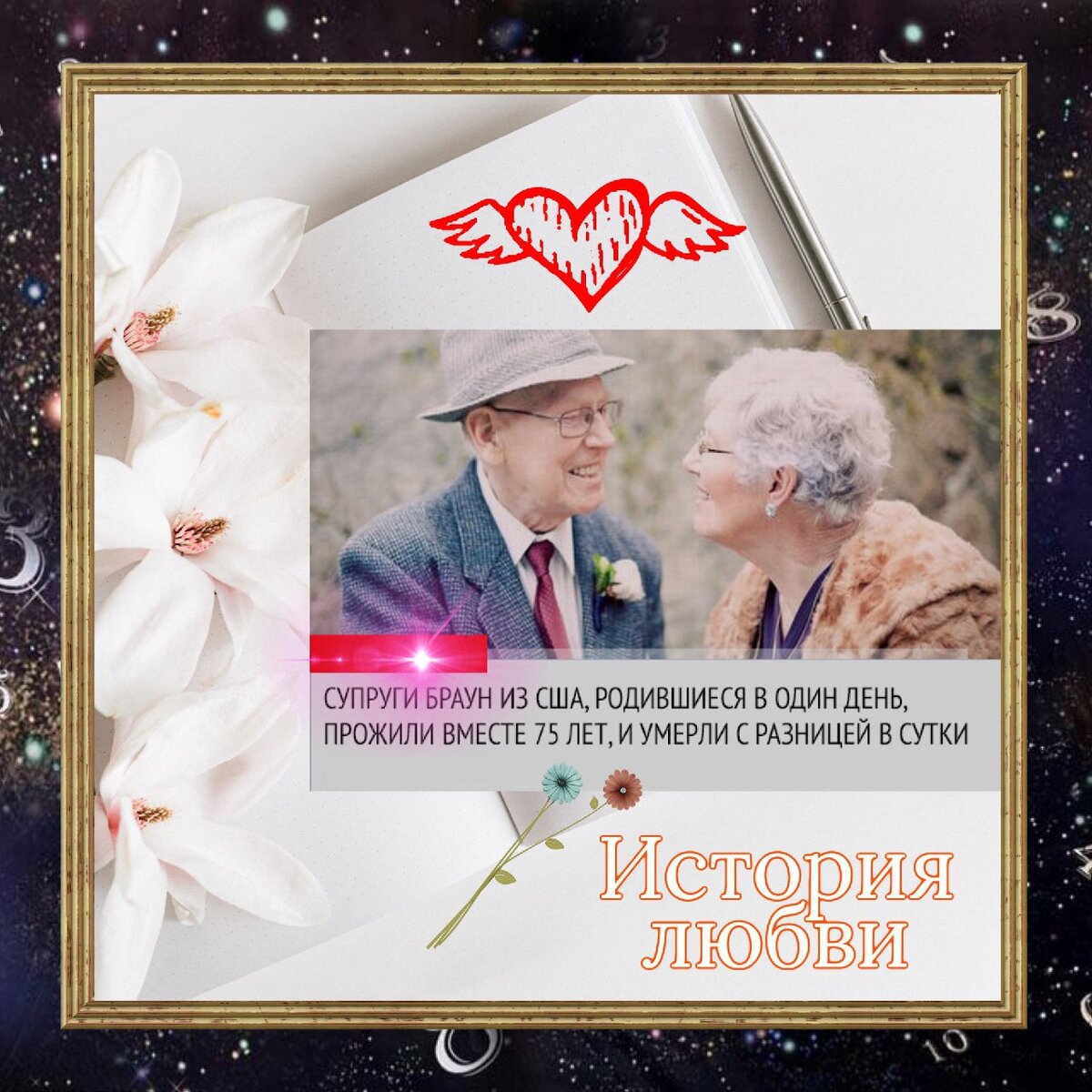 Супруги Лес и Хелен Браун. Оба родились 31.12.1918 г. Познакомились в школе, в 18 лет сбежали из дома, т.к. их родители были против брака, Лес происходил из очень обеспеченной семьи американских пионеров, а вот родня Хелен не могла похвастать ни происхождением, ни достатком. Несмотря на противодействие родителей Леса, они с Хелен просто-напросто ушли из дому – бесповоротно и навсегда. Сыграли очень скромную свадьбу и зажили своим умом. Они прожили вместе 75 лет. Хелен умерла 16 июня 2013, а Лес на следующий день.