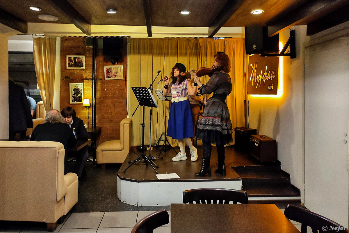 Группа "Елисейские поля" - это Елена Харо, Аркадий Рудейчук и Полина Прянник. Играют в стиле акустик-кабаре. В репертуаре французская музыка всех времен: Эдит Пиаф, Далида, Джо Дассен, Патрисия Каас, Заз, вот это вот все. Побывала на их концерте. Хочу показать несколько фрагментов и рассказать историю о том, как человек исполнил свою мечту. Концерт проходил в кафе "Журфак", это уютное и невероятно атмосферное место в сердце Москвы, районе Хамовники. Заведение располагает к прослушиванию красивой музыки за бокалом вина среди сотен книг. Следующий французский вечер запланирован на субботу 29 октября. Кому интересно такое, запишите себе в книжечку. Вход бесплатный. Увидела в меню этот ВУС 8080. Состав произвел на меня впечатление. Весь вечер собиралась с духом, в конце концов набралась храбрости и заказала его. На самом деле, описание оказалось эффектнее, чем коктейль в реальности. Я опасалась, что это совершенно убийственная штука, оказалось напиток очень так себе. Музыкальная программа