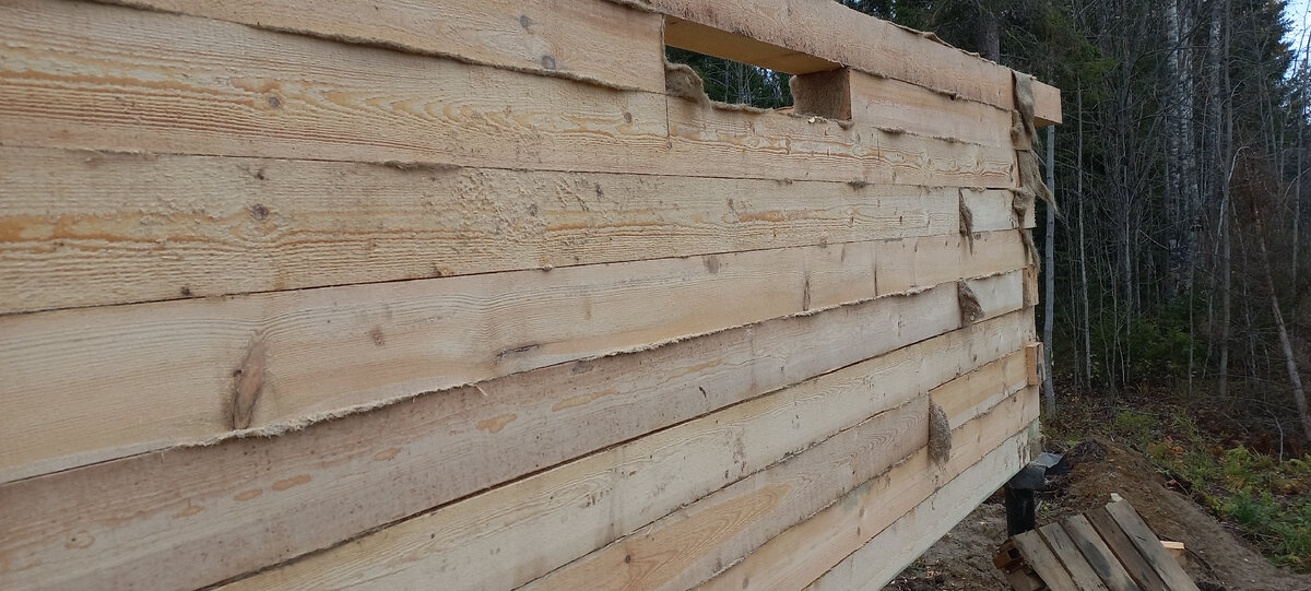 Продолжаю строить брусовой дом. Вышел в нижний уровень окон. У меня спросили о перемычках, которые я оставляю в дверных проёмах. Что это? Дело в том, что во время усадки дома брус высыхает. Это происходит неравномерно. Во время высыхания бруса, меняется его внутреннего напряжение и брус начинает крутить. Нарушается его геометрия. Чтобы сохранить стены и в последствии не тратить время на их выравнивание, в проёмах и оставляют целые бусины до полной усадки дома.
