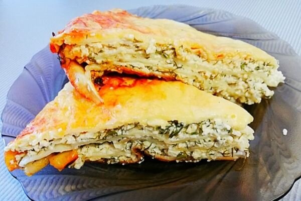 Экономим время. Ленивый хачапури из лаваша с сыром, творогом и зеленью.