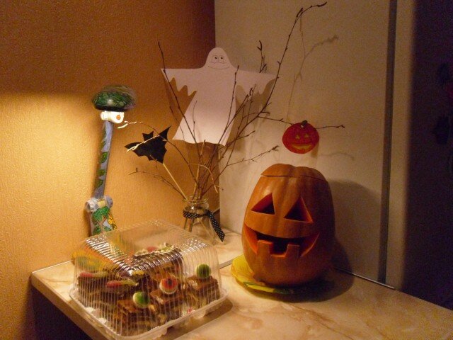 Это очень спорный для многих праздник. Мы его прямо, как настоящий Хэллоуин не отмечаем. И соответственно к определенной дате он у нас не привязан. Это больше вечеринка для детей, по окончанию первой четверти "А ля Хэллоуин" Первый праздник мы провели больше 10 лет назад, для Ивана. Тогда все было скромненько. Ничего для этого праздника в продаже не было. Все вырезала, шила и клеила сами. Со временем это превратилось в наше семейную традицию. Количество декора каждый год увеличивается и обновляется. Мастерство вырезания тыкв совершенствовалось. Этим занимался Вадюха. В этом году пришлось внести некоторые коррективы. Я думаю, что 30 октября мне будет совсем не до Хэллоуина, а лишать детей праздника не хочется. То мы решили перенести его на недельку пораньше. Квартиру мы на этой неделе украсили. В этом году много украшений не захотелось. Скромненько :) Осталось пригласить гостей и накрыть стол с жжжуууткими угощениями :)))