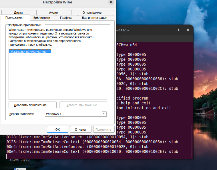 Думаю всем известно, что wine это программная оболочка, которая позволяет запускать Виндоувс приложения в среде Linux. Давайте более подробно поговорим как ей пользоваться. Мои читатели знают, что я использую Линукс Минт, как основную систему, и там wine ставиться не так просто, потому повторю ссылками как правильно установить. 19.3 20.3 21 Вайн позволяет запускать 64-битные, 32-битные, 16-битные программы и библиотеки Windows 9x/NT/2000/XP/Vista/7/8/10/11 и Windows 3.x, но к сожалению не все и не все корректно. Но лучше что то, чем ничего. После установки wine запустите winecfg, возможно вам будет предложено докачать такие библиотеки типо mono WINEPREFIX (префиксы) Префиксы, это отдельные бутылки, где wine хранит настройки и структуру каталогов виндоувс. Вы под каждое приложение можете создать свой отдельный префикс - бутылку и установить там нужные библиотеки, разрядность и вид операционной системы. По умолчанию у вас один префикс по адресу /home/ваш пользователь/.wine Что бы соз
