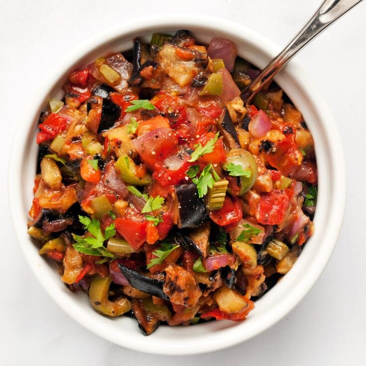 Чтобы приготовить закуску из баклажанов, на 4 кг баклажанов нам потребуются следующие ингредиенты: Баклажаны моем, удаляем хвостик, нарезаем кубиками, солим и выдерживаем 30 минут. Затем баклажаны отожмем, обжариваем на растительном масле и охлаждаем. Перец, чеснок очищаем и нарезаем небольшими кубиками. Зелень ополаскиваем и рубим мелко. Теперь приготовим маринад. Для него воду доводим до кипения, ложем соль, добавляем уксус и охлаждаем. Баклажаны укладываем в кастрюльку слоями, перекладывая их овощами и зеленью. Сверху на овощи помещаем гнет на 2 часа и только потом заливаем маринадом и выдерживаем при комнатной 20 часов. Затем все тщательно перемешиваем, раскладываем в банки и стерилизуем. Закуску из баклажанов охлаждаем при комнатной температуре и переносим в холодное помещение. Приятного аппетита!!!