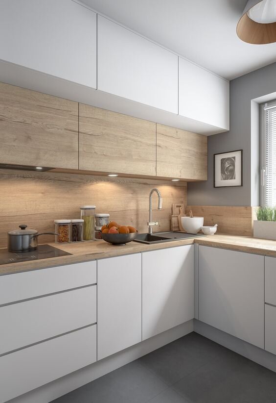 Часто ли вы с подавленным настроением сидите на кухне, забивая время поеданием чего-то жирного и вредного? А что, если мы скажем, что вы сами виноваты в сложившейся ситуации? А дело может быть в освещении, которое вы выбрали во время ремонта на кухне. Как размер кухни влияет на освещение. Вне зависимости от размера есть ровно два правила: 1. Освещайте рабочий треугольник: мойку, столешницу и плиту. Разместите лампочку под шкафчиками, в зоне фартука, или точечно на потолке, если верхних ящиков нет. 2. Лампочки должны быть устойчивыми к влаге, пару и перепадам температур, а также легкими в эксплуатации. Если у вас малометражка, то из основного света можно оставить только центральную люстру, чтобы не перегружать комнату. В более просторных помещениях обязательно нужно иметь несколько источников света на разных уровнях высоты. Не забывайте использовать и естественный свет от окна. Хоть его бывает не так много, но он всегда будет лучше любого искусственного. Свет и цвет кухни. Белые и светл