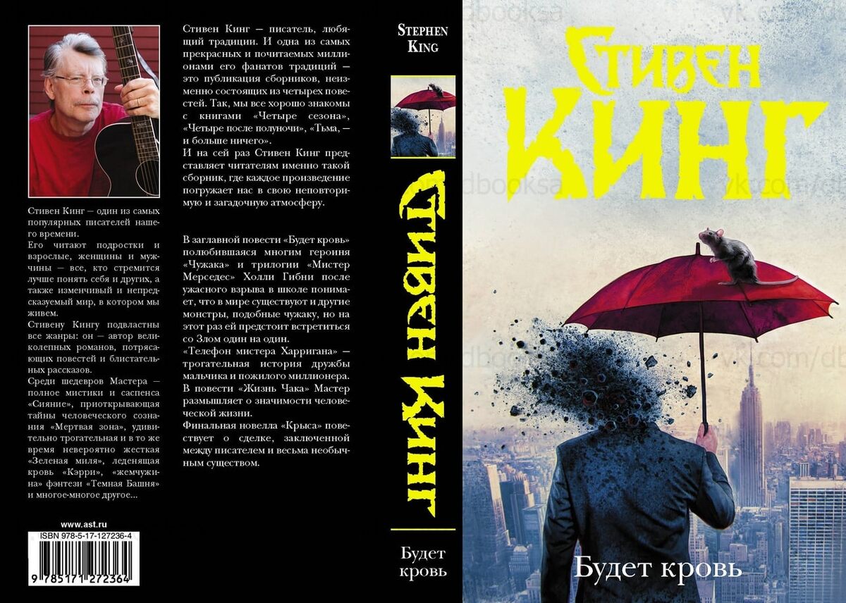Сборник повестей мастера ужасов. Какие-то больше понравились, какие-то меньше, но в целом хорошо. Забавно, что когда я читала рецензии, оказалось, что те повести, которые мне не особо зашли, наоборот очень понравились людям, а та, от которой я была в полном восторге, наименее понравилась другим. Но тут дело в том, что конкретно для этой повести Кинг взял уже знакомых по другим книгам героев и связал их вместе. Он взял детектива Холли Гибни, которая сыграла не последнюю роль в «Чужаке» и «Мистере Мерседесе», только там она была второстепенным героем, а в «Будет кровь» всё вертится вокруг неё. Также периодически упоминались и другие уже знакомые мне герои, поэтому я была очень-очень рада и тому, что читаю про Холли, и упоминанию других. Так что если вы не читали упомянутые мною книги, то лучше начать с них, а потом уже читать эту повесть. Хронологически события в «Будет кровь» тоже происходят позднее «Чужака» и «Мерседеса». Кратко о других повестях сборника: "Телефон мистера Харригана"