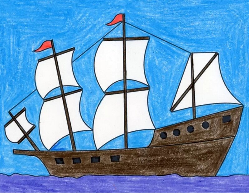 Как ребенку нарисовать парусный корабль за 9 простых шагов