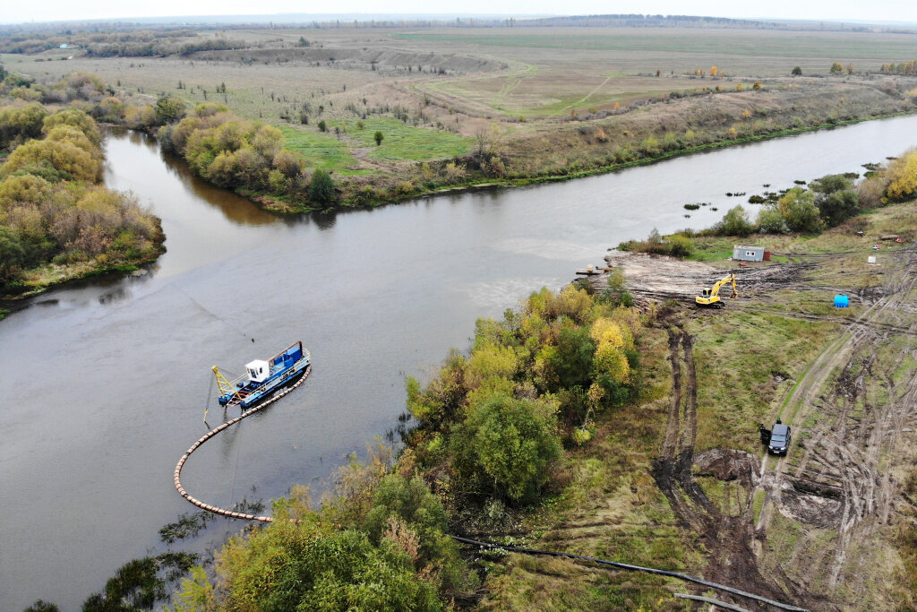 Расчистка реки Быстрая Сосна проводится в Измалковском районе в рамках федеральной программы «Сохранение уникальных водных объектов» нацпроекта «Экология». Общий объем выемки должен составить около 350 тыс. кубических метров, на сегодня – 112 тыс.