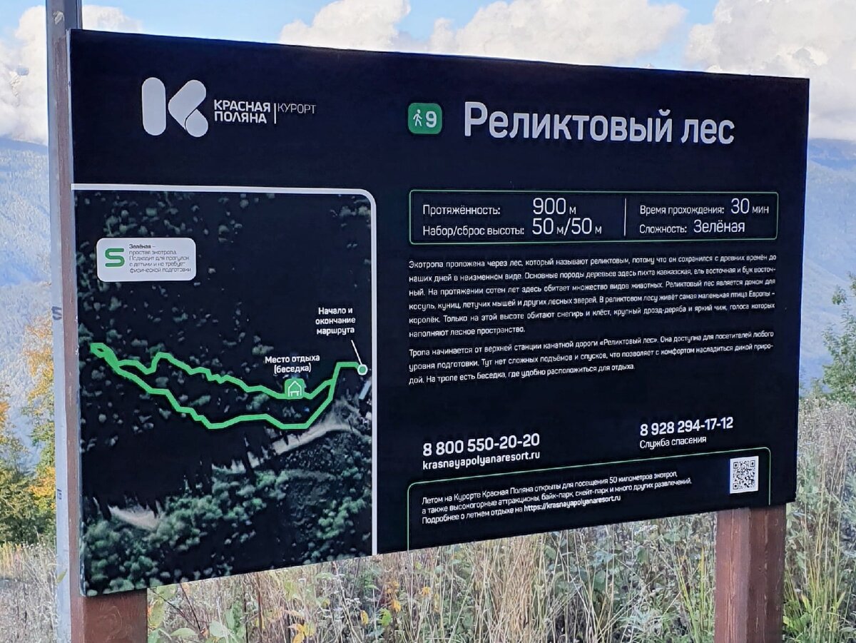 Если подниметесь на канатной дороге до высоты +1460 в Красной Поляне, то сможете прогуляться по экотропе "Реликтовый лес". Маршрут достаточно простой, пройти его будет несложно даже без особой физической подготовки. Экотропа проходит через лес, который называют реликтовым, потому что он остался неизменным с древних времён. Во время прогулки сможете насладиться красотой природы и полюбоваться потрясающими видами. На протяжении маршрута есть различные информационные таблички, которые рассказывают о растениях и животных. Есть по пути и беседка для отдыха. И ещё несколько красивых видов в завершении статьи. Другие статьи о Красной Поляне: