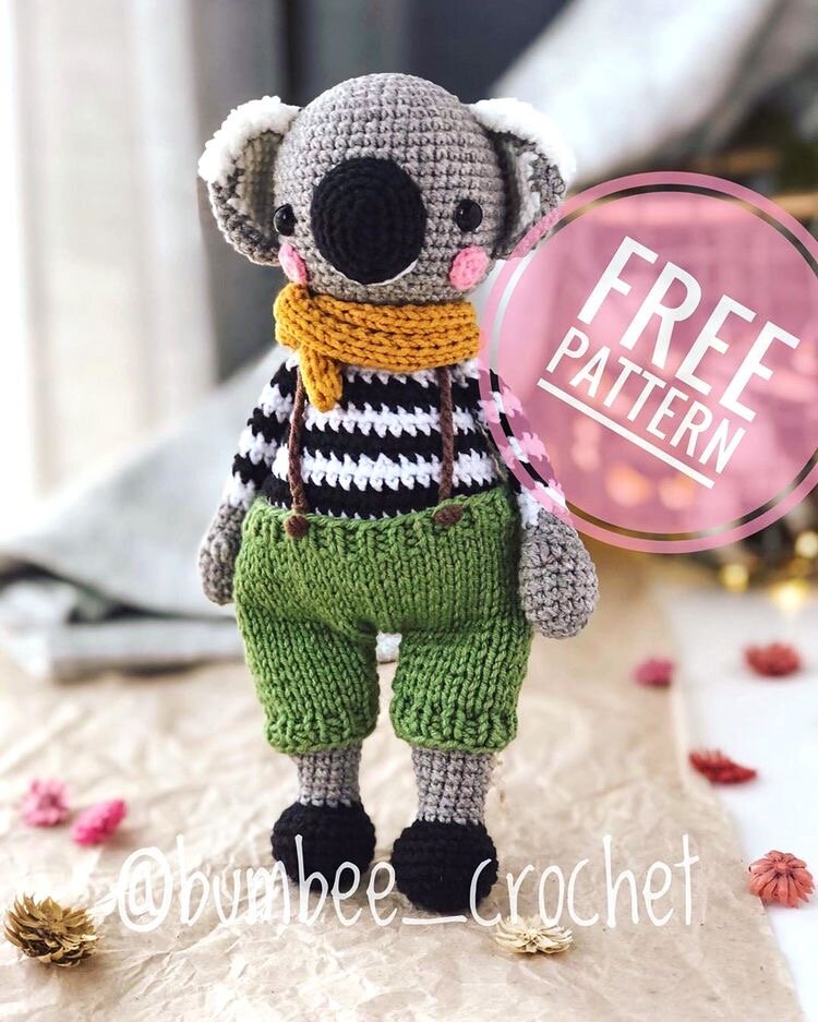 Очаровательный мистер Коала амигуруми — вязаная игрушка от Кристины @bumbee_crochet. Для создания коалы автор использовала крючок №2 и пряжу Alize Cotton Gold. Из описания схемы Вы также узнаете, как связать спицами штанишки, чтобы дополнить образ мистера Коалы. Высота готовой вязаной игрушки около 22 см.