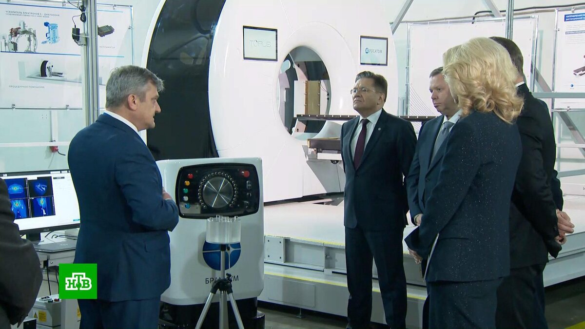 [ Смотреть видео на сайте НТВ ] Сегодня прошло совещание по производству высоко-технологичного медоборудования и изотопной продукции, на котором говорилось о том, что некоторые пилотные проекты по импортозамещению лекарственных препаратов в России уже реализуются. Совещание по производству высоко-технологичного медоборудования и изотопной продукции прошло в одном из предприятий Росатома — НИИ технической физики и автоматизации. Как отметил глава госкорпорации Алексей Лихачев, раньше медицинская тематика в Росатоме находилась в тени главных задач атомной отрасли, но сегодня это одно из приоритетных направлений работы. Вице-премьер Татьяна Голикова заострила внимание на увеличении производства радио-фармацевтических препаратов. Она отметила, что у России есть для этого все возможности. Татьяна Голикова, вице-премьер: «Нам для диагностики в основном онкологических заболеваний нужно порядка 81 тысячи упаковок радиофармпрепаратов, — это диагностика. Для терапевтического лечения — более 2,7