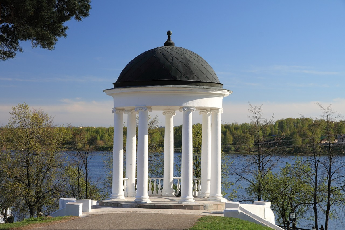 Итак, в наших предыдущих публикациях мы вспомнили, где снимал свои фильмы Н.С. Михалков. Пришла пора вспомнить и про картину, в которой он замечательно исполнил одну из главных ролей. Речь, конечно, про "Жестокий романс". Собственно город в пьесе Островского выдуман. Не знаю уж зачем ему это понадобилось, может быть чтобы не обижать другие города, "где могла произойти точно такая же история". В общем, Бряхимова в реальности нет. Рязанов долго выбирал, какой из волжских городов больше всего подойдет на эту роль. Ему Бряхимов виделся крупным городом. И сначала хотели снимать в Ярославле или даже еще более крупном Горьком. Однако сняв несколько кадров, что-то пошло не так - видимо все-таки скрыть масштабы современного города очень трудно. В результате, переместились в красивейшую, но более провинциальную Кострому. Но часть пейзажей осталась ярославская. Например, там очень хорошо видна Ильинская церковь. Но беседка - это уже Кострома. Ее так и называют там - беседка Островского. Причем эт