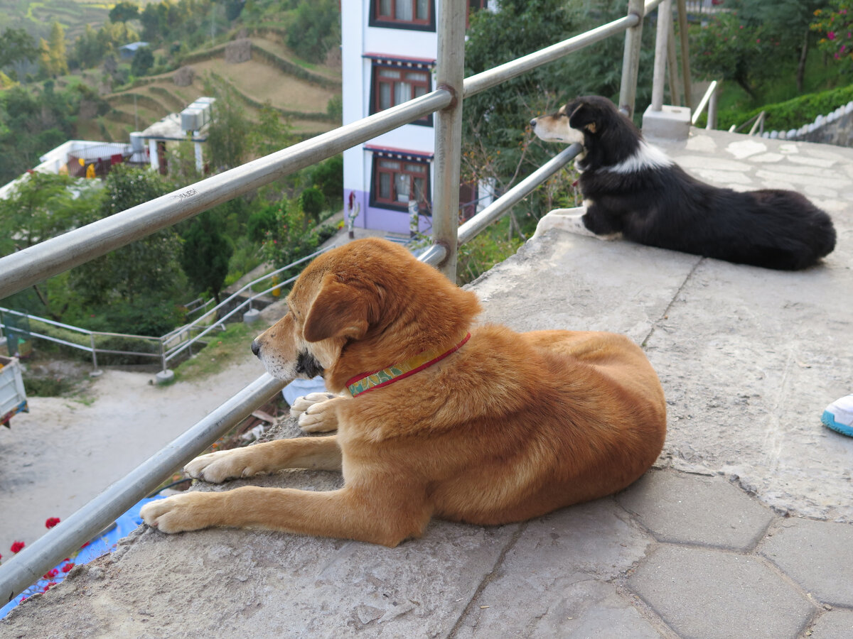 Всегда обращаем внимание, что собаки которые живут на территории буддийских монастырей, отличаются тихим расслабленным нравом. Их практически не слышно, они дружелюбны к посетителям. Есть даже такое шутливое объяснение, что это переродившиеся ленивые и глупые монахи, которые плохо постигали буддийскую науку, но были сильно привязаны к этому месту. Путешествуя по Непалу, в одном из горных монастырей, мы встретили двух удивительных собак, которые по настоящему медитировали, по другому их состояние не объяснить. Они бодрствовали и абсолютно не обращали внимание на нашу группу, которая прошла буквально в шаге от них. Мы находились на территории храма не меньше получаса и за всё это время положение собак не изменилось. Точно так же они проигнорировали нас когда мы возвращались назад этим же маршрутом. Или другой питомец из монастыря Нала Гомпа в Непале. Кругом суета, праздник, несколько тысяч людей вокруг, нисколько не мешают ему видеть свои собачьи сны. Видно, что он периодически меняет л