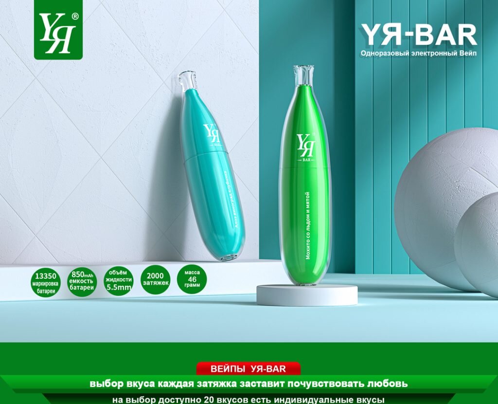 Одноразовые электронные сигареты «YЯ-bar» предоставляют потребителям выбор из 20 различных вкусов, вкус чистый, и каждый рот может ощутить свежесть.