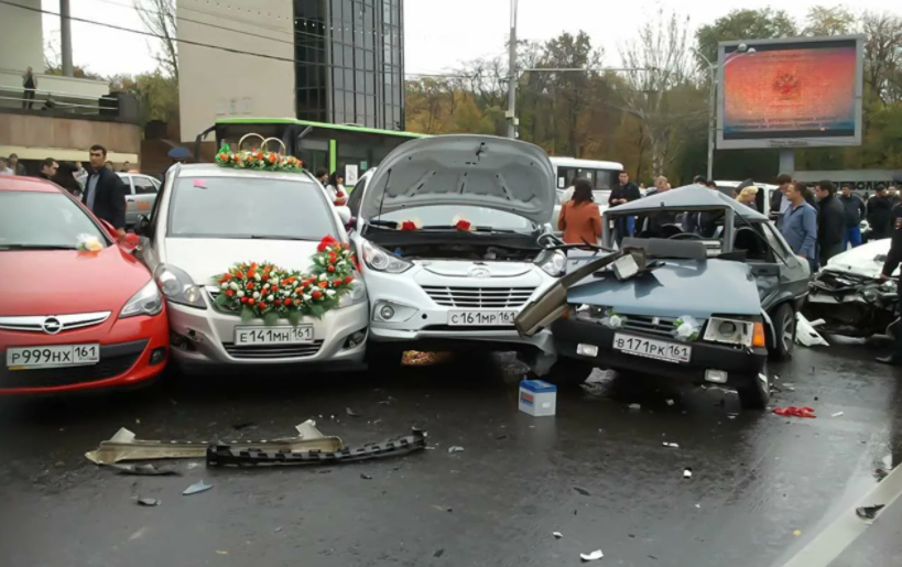 1. Как устроить массовую аварию с участием сразу 4 свадебных автомобилей. Да просто немного перебрать чего покрепче, а потом усадить этих пьяниц за руль. Вот и все дела. Как можно так подставлять себя и других участников дорожного движения, стыд и срам! 2. Вот так вас будут видеть окружающие водители, когда вы с другом мчитесь на мотоцикле на костюмированную вечеринку в пятничный вечер. Неплохой прикид, так ведь? 3. Водители Hummer, могут только лишь завидеть на горизонте вывеску Макдональдс, что тут же свернуть поперёк дороги навстречу к любимой забегаловке, даже не заметив фундамент с торчащей арматурой. И как у них ума хватает заработать деньги на джип? 4. Думаешь, если ты владелец Wrangler, то можешь беспрепятственно парковаться в неположенном месте? Так вот и нет! Даже небольшое препятствие может остановить наглеца. А тут и полиция подкатила со штрафом! 5. Если две подруги встретились на дороге, то они будут обсуждать последние новости, обниматься и спорить прямо в пробке, зад
