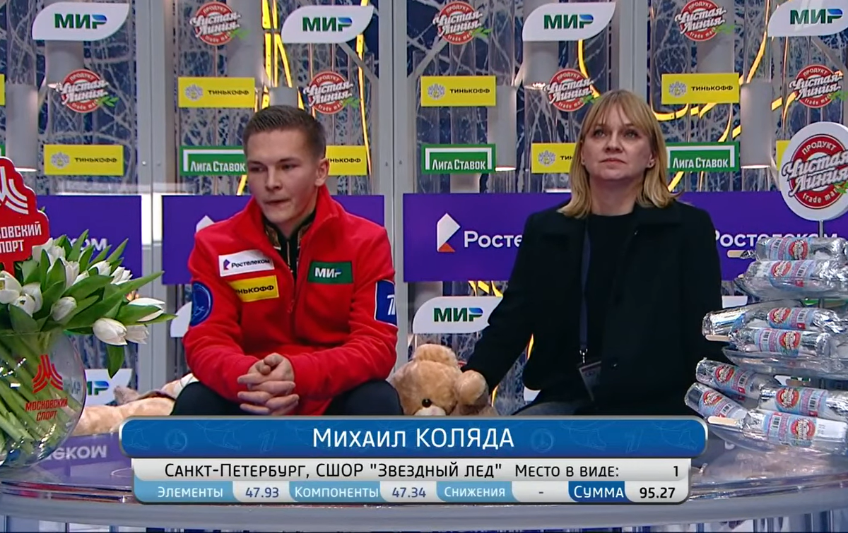 Как быстро идёт время... Не успел оглянуться, как большая часть соревнований уже закончилась. Остались только произвольные программы. Очень порадовала Камила Валиева. Её короткую программу я после контрольных прокатов сильно критиковал в плане понимания музыкального сопровождения. А здесь она раскрылась в совершенном образе. Я был впечатлен. Девушек вы можете посмотреть ЗДЕСЬ. Парное катание ЗДЕСЬ. Комментирует Женя Медведева. Честно? Мне понравилось. Почему? Она говорила правду о недокрутах всех без исключения. К соревнованиям. Даниил Самсонов. Москва, МАФК школа "Хрустальный". Даниил единственный из юниоров, кто выкатывал дорожку шагов на четвёртый уровень. Здесь я старался и считал. На мой взгляд у Самсонова был именно четвёртый уровень. Да, вращение одно третьего. ГОЕ мизерное для уверенного проката. На международных стартах ему даже за меньшее ставили ГОЕ выше. Судьи - жадины. Программа выверенная от и до. Браво тренерам. Практически идеальный прокат. Ещё бы к нему элементы ульт