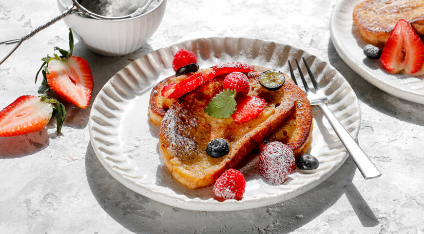 Гренки из батона с молоком на сковороде - блюдо универсальное. Из него может получиться как сладкий, так и сытный завтрак. Например, с шариком мороженного, ягодами или фруктами, джемом или шоколадом – это отличный десерт к чашечке черного кофе. Но базовый рецепт легко преобразовать и приготовить закусочные гренки. В этом случае не добавляйте сладкие ингредиенты в тесто, а положите немного измельченной зелени и чуть больше соли. Подайте такие гренки с ломтиком поджаренного хрустящего бекона, яйцом пашот или глазуньей – и перед вами сытный вариант завтрака. А те, кто следит за своей фигурой, могут запечь хлеб в духовке. Как бы вы ни приготовили гренки, будет вкусно! Время готовки - 30 мин Количество порций - 8 Количество калорий - 183,3 ккал БЖУ: 4,4 г / 8,9 г / 19,8 г ПОШАГОВЫЙ РЕЦЕПТ ПРИГОТОВЛЕНИЯ