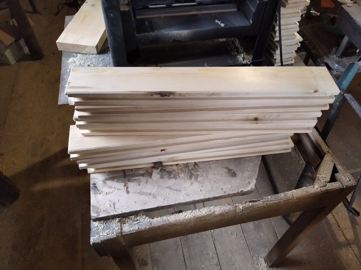 В данной статье расскажу об изготовлении входной двери из массива дерева своими руками. Такие двери я уже делал, пользуются спросом. Дверь изготавливал из сосны. Дверь состоит из: Расчеты по размерам сделал следующим образом. Стандартная ширина двери 80 мм. Получилось две вертикальных стоевых шириной по 120мм, и 7 деталей на филенку шириной по 80 мм. Филенок у двери получается две, поэтому общее количество деталей 14 штук. Высота двери 2 метра. Подготовка деталей двери Подготовка деталей производилась довольно просто. Сначала отстрогал и обрезал в размер вертикальные и горизонтальные поперечины. Произвел на них разметку и сделал в вертикальных поперечинах пазы, а в горизонтальных шип. Таким образом при сборке полотна двери получится столярное соединение шип-паз. Такое соединение делал качественно, не торопясь. Оно должно быть плотным с отсутствием люфтов. Детали для филенок Изготовление филенок затрону дополнительно. Изготавливались они из нарезанных в размер и отстроганных, от