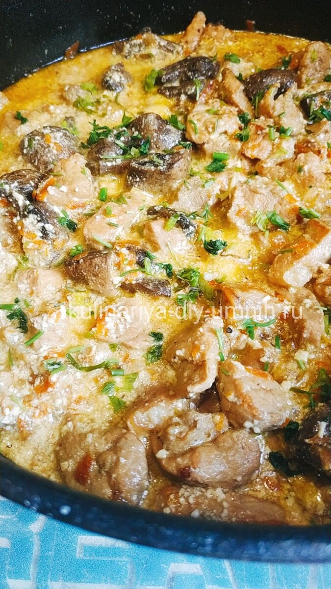 Свинина тушеная в сметане с грибами