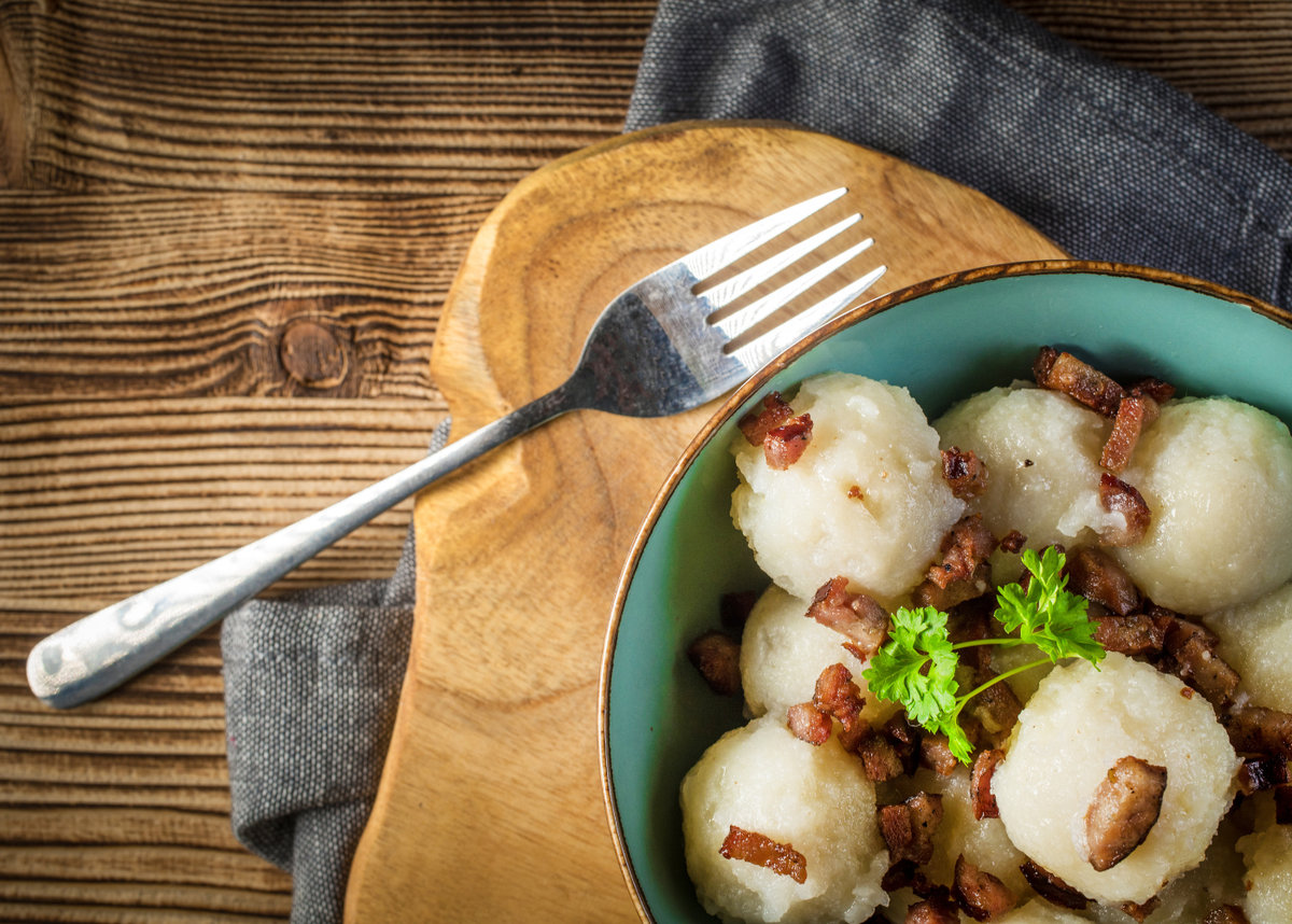 В Германии картофельные галушки с мясной начинкой можно заказать практически в любом ресторане или кафе. Там их подают еще и с квашенной капустой.