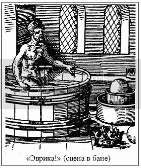 Еще за 250 лет до Рождества Христова царь Гиерон поручил ювелиру изготовить ему золотую корону, передав при этом мастеру соответствующее количество золота. Корона была изготовлена, но, усомнившись в честности мастера, царь, согласно легенде, поручил своему другу и родственнику Архимеду проверить честность ювелира. Хотя корона весила столько, сколько было отпущено на нее золота, царь заподозрил, что она изготовлена из сплава золота с другими, более дешевыми, металлами. Арх