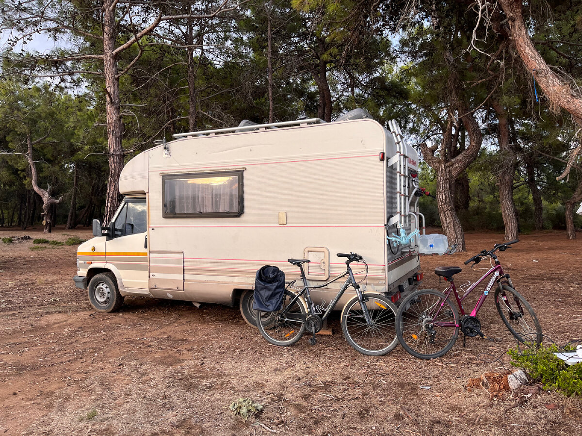 Прошла неделя жизни в Турции. Я хочу подчеркнуть, что именно жизни, а не отдыха. Вода Мы расположились на дикой стоянке с несколькими семьями, то есть за кемпинг не платим. Техническая вода для мытья посуды и душа в шаговой доступности, но я все равно проезжаю эти 150 м на велосипеде, чтобы не тащить 20 л воды на спине. За бесплатной питьевой водой надо ездить в поселок на автомобиле или велосипеде. Получается в одну сторону до 10 минут. Энергия Электричество стабильно дают солнечные панели. Было два пасмурных дня, но зарядки аккумуляторов хватило. В общем, электричество тоже бесплатно. Газ За две недели мы сожгли один газовый баллон, который я заправлял за 600₽ еще в России. Мы включали отопление несколькими холодными ночами по пути на юг, готовили еду, грели воду для душа. И всё это время от газа у нас работал холодильник. Заправить баллон тут можно практически на любой АГЗС, но нужен переходник на пистолет. На днях займемся этим вопросом. Дизель Безусловно это самые большие счета по