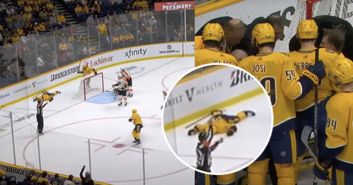 Защитник «Нэшвилла» замертво рухнул на лед: встретился с бортом, а потом с соперником. Его увезли на носилках🙏