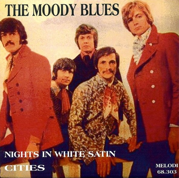 К 1967 году дела у британского блюзового квартета The Moody Blues шли из рук вон плохо: ударнику даже пришлось продать установку. Срочно требовался хит - и он появился. Знаменитая микросимфония была записана с оркестром The London Festival Orchestra. Первоначально планировалась запись рок-версии симфонии "Из Нового Света" Дворжака в исполнении группы и оркестра (эту запись рекорд-компания собиралась использовать для демонстрации развития звуковых технологий). Но The Moody Blues пошли по другому пути и записали собственный концептуальный материал в симфоническом обрамлении, став первопроходцами прогрессив-рока. Автор этой магической песни гитарист, солист и композитор группы Джастин Хейворд (Justin David Hayward) (на тот момент ему было 19 лет) говаривал, что образ белого атласа пришел в голову потому, что кто-то подарил ему набор белых шелковых простыней. С названием вышла накладка: изначально песня называлась "Рыцари в белом атласе", но так как в английском языке knight и night произ